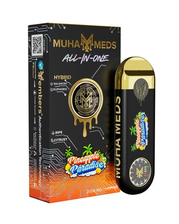 Take a tropical escape with Muha Meds Pineapple Paradise, a smooth and euphoric hybrid that perfectly balances fruity flavor and potent performance. Each 2-gram all-in-one device is crafted for convenience, filled with premium distillate and infused with vibrant pineapple terpenes that hit ripe, sweet, and citrusy