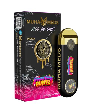 Taste the sweet side of relaxation with Muha Meds Dragon Berry Runtz, a heavy-hitting indica that blends ripe berry flavor with the candy-smooth taste Runtz is known for. Each 2-gram all-in-one device delivers premium potency and a mellow, euphoric body high that settles you into pure comfort